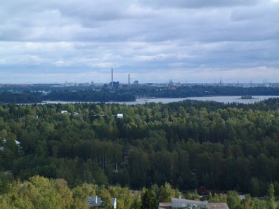 Maisemakuva Ravintola Haikaranpesästä itäänpäin Helsinkiin.